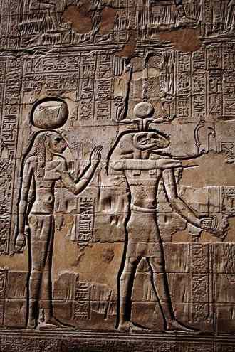 Menhit and Khnum, wall carving at Esna Temple,