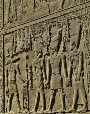At Kom Ombos there are two sanctuaries, one dedicated to Sobek, the other to Heru-ur, or Haroeris, a form of Horus in Egyptian called "the Elder" which was worshipped with Sobek here. Each of them contains a pedestal of granite upon which once rested a sacred bark bearing an image of the deity.
